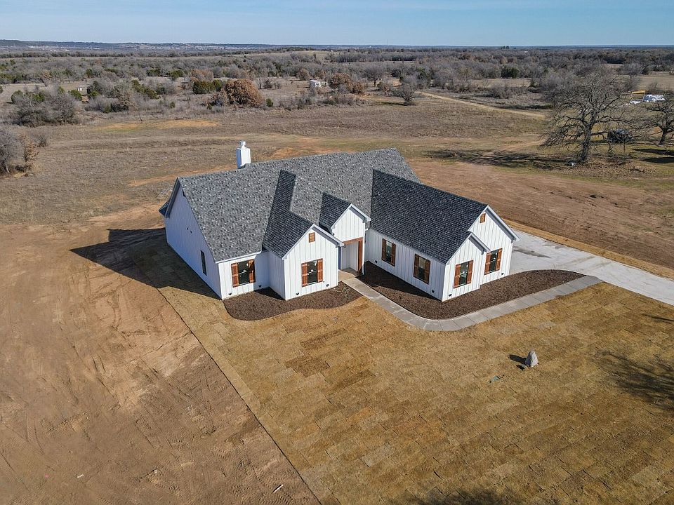 Absolutely beautiful built home, perfect for relaxation or those entertainment opportunities. Enjoy the grand open living concept with a WBFP and windowed view to your backyard patio with an outdoor kitchen complete with Bull Station grill also hot and cold water. The fabulous kitchen features beautiful island, custom cabinetry, cooktop, 2 walk in pantries and quartz counters. Kitchen is plumbed for gas for those cooking options. This home features 8 ft solid core doors, wood trim throughout. The 2nd primary bedroom with ensuite walk in shower. Bedrooms 3 and 4 share a full bath. The laundry room complete with sink and room for a freezer. How nice to have a mud with built in and that garage with epoxy floor and beautiful cedar finished out garage door, a camera in opener. Much to enjoy in close proximity is The Baker Hotel, Possum Kingdom Lake and Lake Mineral Wells State Park. There is no HOA and no city utilities having your own septic and water well. YOUR ANIMALS WELCOME!