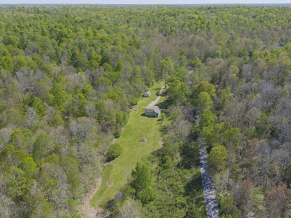 Beautiful rustic and rural retreat on 22 acres. Property is a mix of flat open land and wooded areas. Stream/natural spring runs through property. Screened porch, large eat-in kitchen (fridge included), wood burning stove in living room, and knotty pine throughout. Large detached garage for your recreational vehicles. About an hour from Nashville. Great for a primary home in a rural setting or a weekend getaway.