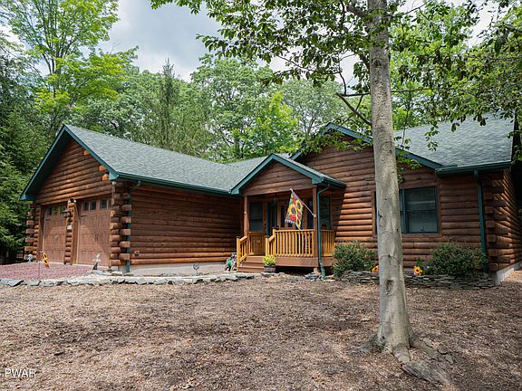 Welcome to this impeccably maintained ranch home in the desirable community of Wallenpaupack Lake Estates! The home is just 9 years young but feels like it was built yesterday!This move-in ready gem (including all the furniture!) features a bright open floor plan, perfect for modern living and entertaining. With 3 spacious bedrooms and 2 full bathrooms, including a private primary suite. There's plenty of room to relax and unwind.Built with high-end finishing like hardwood and tile floors throughout! Not to mention the granite counter tops! You will love the convenience of the attached 2 car garage central heat, central A/C, and the stunning look of the log siding!Enjoy the peace and privacy of this charming home, ideally located just a short drive to beaches, pools, and community parks. Wallenpaupack Lake Estates offers incredible amenities including multiple lakes, outdoor and indoor pools, beaches, a clubhouse, fitness center, and a marina with direct access to Lake Wallenpaupack! Resort living that makes everyday feel like a vacation!Whether you're looking for a full-time residence or a weekend escape, this home checks all the boxes. Don't miss your chance to own a beautifully cared-for home in one of the Poconos' most sought-after communities!