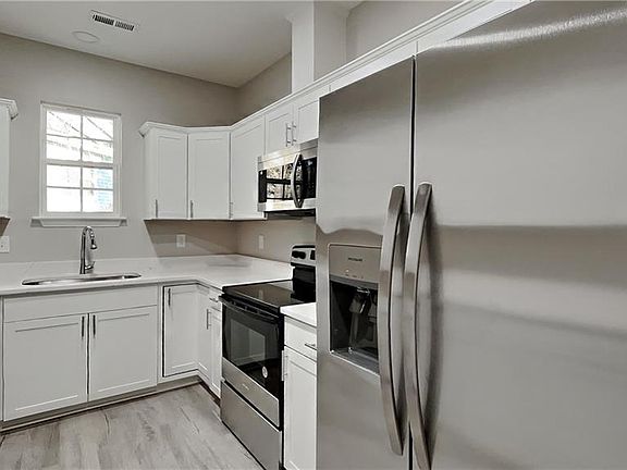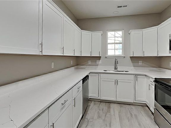 Beautiful, affordable, one level, new build in a convenient Winston Salem location. Great curb appeal with a rocking chair front porch. Entering the home you are greeted by LVP flooring that runs throughout the home. The cathedral ceiling in the livingroom makes the space feel spacious and open. The kitchen has shaker cabinets, stainless steel appliances, and quartz counter tops. The primary suite has a convenient en-suite bathroom.