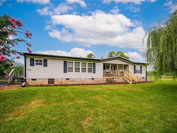 Well maintained one owner manufactured double wide at the foot of Sauratown Mountain. The Mountain view is spectacular. Large fenced in back yard on a 1acre lot. Home features 3 bedrooms, Kitchen/dining combo with kitchen island. New front porch steps, new deck, wood burning fireplace, 2 full baths and a large mud/laundry room. Large Primary Closet, walk in shower, and lots of kitchen cabinets and counter space. Includes 4Year old 2 car detached carport and a small storage building. Gutters and metal roof appx 5 years old with lifetime warranty. Septic pumped every 5years. ADT security if buyer wants transfer, Easy Commute to Winston Salem, Greensboro or Mt Airy. Rural setting.