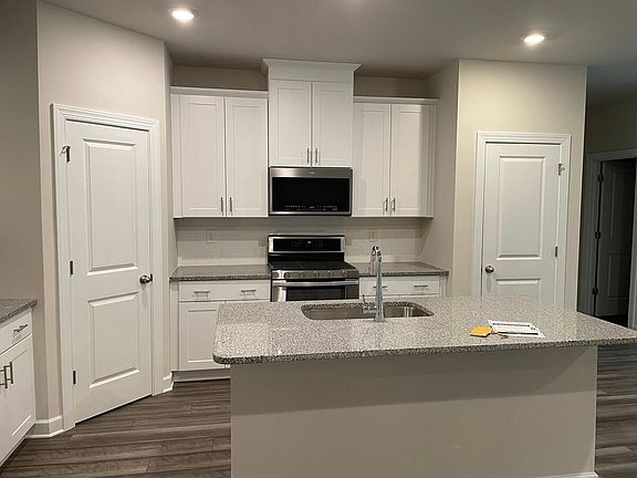 Flat yard in rearFamily roomLarge islandPowder roomKitchen with granite countertopsStainless steel appliances
