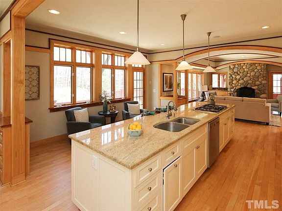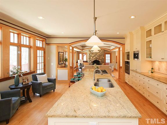 Stunning Arts & Crafts custom home on a private 3.7 acre double lot, in CHCCS school district, 10 mins from downtown Carrboro, EASY COMMUTE TO DUKE. Light & inviting! Living areas flow seamlessly into each other with every detail thoughtfully considered: deep cherry & maple wood mouldings, river stone wood burning fireplace, screened porch, large gourmet kitchen. 4 Bedrooms and library/office, 5 full baths, huge bonus room over 3 car garage for extra work/play space. One of the most beautiful lots in CH!