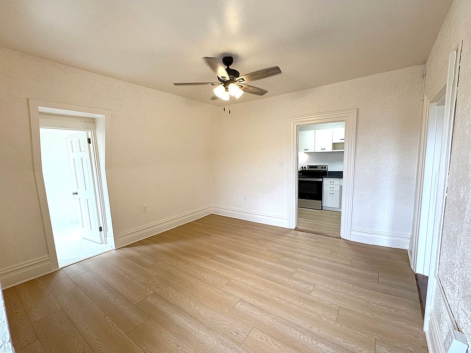 1 bedroom with an extra room that could be an office or a small guest bedroom. Newly remodeled, all new appliances. great Location. spacious rooms with high ceilings and ceiling fans. Pets okay with a small rent increase and a pet deposit. No Smoking. Utilities not included. Must show 2.5 x rent in monthly income. Washer and dryer included. Porch and patio. Spacious grounds. Application through Zillow. Great place in a great neighborhood. month to month