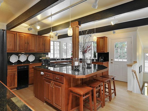 Large remodeled home enjoys a park-like estate setting with acres of flat land! Cherry cabinets, island/breakfast bar with granite counter tops,dining/family room with open beam ceilings, wood burning stove. One bedroom and full bath on main level, 2 attic bedrooms + full bath on top floor. Lower level living room & formal dining with gorgeous wood beamed ceilings, arched windows, gleaming hardwood floors. 4 more beds/2baths on expanded lower level, including spacious master suite with huge walk-in closet, window seat, French doors. Flexible floor plan could work well for in-law/guest quarters. Expansive deck, ideal for entertaining, overlooks the beautiful property and mountain views. Circular driveway with pavers, detached garage, workshop/storage above. Amazing land, mostly flat, ample room for horse facilities, pool, tennis court, additional outbuildings...or simply enjoy nature at its finest. Lakeside/CT English Middle/Los Gatos High! Incredible value for potential estate property
