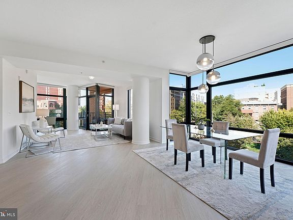 Stunning 2-bed 2-bath corner condo and the largest unit size in the building located in the heart of DC! Enter the bright and airy living space with newly installed light modern floors throughout, and floor-to-ceiling glass windows flooding the unit with natural light and incredible views. Chef’s kitchen boasts ample cabinet space, granite countertops, new stainless steel appliances, and an island, providing extra countertop space, perfect for cooking or enjoying your morning coffee. Owner’s suite offers high ceilings, contemporary light fixtures and en-suite bath with modern vanity, built-in linen cabinet and frameless glass walk-in shower. Generously sized secondary bedroom and full guest bath with garden tub and shower combo. Step out onto your private balcony space, to enjoy "central park-like" tree-lined views and gorgeous sunsets. Washer and dryer in-unit. This contemporary building offers several amenities including secured lobby, parking garage with assigned spot, and a spectacular rooftop terrace with a swimming pool, lounge area, grills, and 360 views of DC! Conveniently located just a short walk to City Center for luxury shopping and world-class dining, Capital One Center, and Washington's best museums. Walk score of 98 = Walker's Paradise! Don’t miss this!