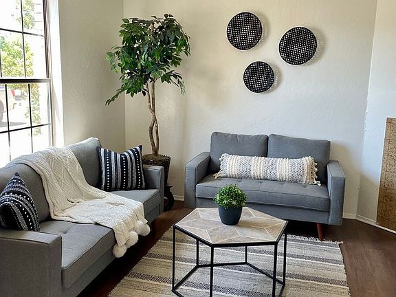 Introducing the Rio Rancho 2 Bedroom 1 Bath apartment, coming October 2024. Located in the heart of Rio Rancho, NM, this spacious apartment offers two bedrooms and one bathroom, perfect for those seeking a comfortable living space. Enjoy the convenience of washer dryer hookups and close parking, making everyday tasks a breeze. The highlight of this apartment is the large backyard, providing a private outdoor space to relax and unwind.Contact us today for more information on pricing and availability. $1100/month $1100/security deposit $45 application fee Pets allowed, 2 pet limit, $300 non refundable fee per pet at move in. Showings begin October 1, 2024 *photos are reused and not specific to this unit, layout is identical but some upgrades vary by unit.*