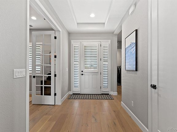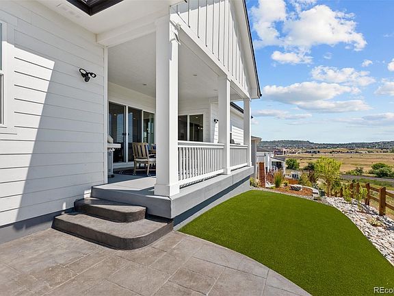 Welcome to this stunning 5-bedroom, 3.5-bathroom modern farmhouse, built in 2022 offering breathtaking views of the Castle Rock and adjacent open space. The main level boasts a gourmet kitchen with top-of-the-line GE Cafe appliances and quartz countertops, a light-filled living room with soaring ceilings, and a private office perfect for today’s work-from-home lifestyle. The main level primary bedroom retreat features a luxurious 5-piece bathroom and a spacious walk-in closet. To finish off the main floor, two sizable guest bedrooms share a Jack-and-Jill style bathroom, as well as a large laundry room. The finished basement is an entertainer’s dream, with a large media area, a full bar, two more bedrooms, and ample storage. Outside, enjoy the beautifully crafted stamped concrete patio spaces, ideal for outdoor dining and soaking in the panoramic views. This home combines modern luxury with farmhouse charm, making it a rare find in an unbeatable location. **Please see the list of upgrades in MLS supplements as these owners did just about everything to make this home luxurious!**