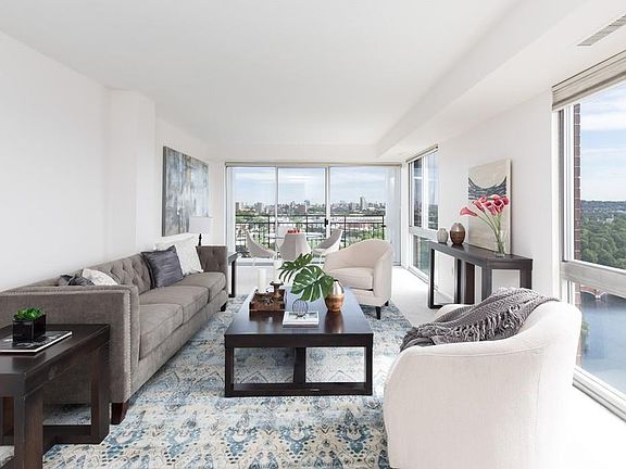 18th floor of sought-after and well-established 1010 Memorial Drive, one of the most desirable doorman buildings in the metropolitan area. A cooperative, the elevator building is professionally managed, one-hundred-percent owner-occupied, and known for its high maintenance standards. This sunny apartment offers unbroken long vistas in several directions: the Charles River and the Harvard playing fields on the southern side, the western suburbs to the west, and sweeping views of the Brattle area and west Cambridge to the north. Large balcony. There are floor-to-ceiling south-facing windows, with a large living room with multiple exposures.