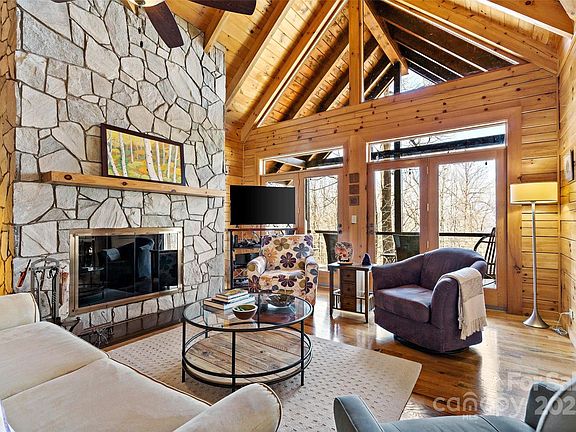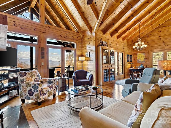 Located in beautiful Gateway Mountain, this stunning log home offers breathtaking views of Mount Mitchell. Featuring an open floor plan with expansive windows, this 3-bedroom retreat is bathed in natural light, bringing the outdoors in. Primary bedroom offers long range views and en suite bathroom. Features include radiant heated floors in all the bathrooms and an Aprilaire built-in humidifier/ dehumidifier. Enjoy the tranquility of nature from the wraparound deck, ideal for relaxing or entertaining. Finished basement offers exceptional living area with a fireplace, flex space and a second primary bedroom also with stunning views. This level could easily be a separate apartment if desired. Mountain living at its finest with privacy, modern comforts, and endless scenic beauty—all within a gated community with natural amenities just minutes from Black Mountain and Asheville. This home has never been in the rental program. Short term rentals are allowed here. Furnishings negotiable.