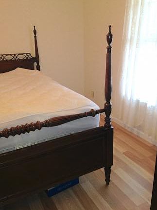 ONE LEVEL LIVING! Here it is...Level fenced in yard in a wonderful neighborhood. 3 bedroom 2 bath. LARGE living room with cathedral ceilings with wood beams. Brick gas fireplace. Dining room, Nice kitchen with breakfast room with French doors open up to a covered deck. Nice level fenced in back yard. NEWER: heat pump, metal roof, flooring throughout, garage doors. All appliances remain.