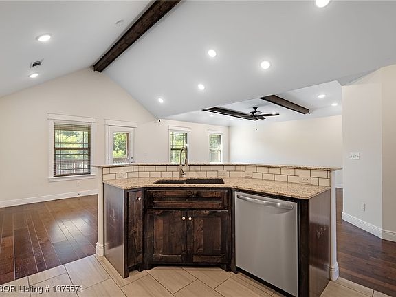 Check out this stunning brick home in an ideal location! Gorgeous hardwood floors separate a convenient split floor plan. Tall cathedral ceilings and tons of natural light add charm and functionality to the open dining and living area. The kitchen features plenty of cabinet space, a pantry, stainless steel appliances, and beautiful granite countertops. The primary suite opens up with vaulted ceilings, a large dual vanity, a spacious walk-in closet, and a tiled walk-in shower. Best of all, step outside on the covered back patio to a huge backyard, ideal for entertaining and relaxation, all on a generous 0.45-acre lot. Located just 6 minutes from ARCOM medical school, 9 minutes from Fort Chaffee military base, and just 1 minute from Barling City Park, this home offers peaceful suburban living without sacrificing convenience and access. Call your favorite realtor and schedule your showing today!