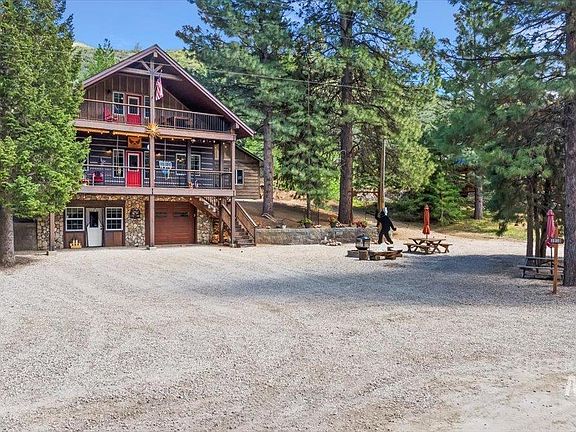 Custom built log cabin retreat just 2 miles from Anderson Reservoir and walking distance to the river! This secluded mountain getaway offers year-round access with snow removal included through HOA. Two front balconies offer scenic views, while the covered back patio features dual ceiling fans and a Jacuzzi-brand hot tub. The garage includes hydronic floor heat and an electric wall heater, plus a heated, insulated bonus/flex room that could serve as additional sleeping space. Property features include a detached shed with 220V power and storage shelves, covered wood storage, a block fire pit, a large gravel parking area with RV Hookups and a partially finished outhouse with a working toilet and partially finished shower. Surrounded by trees and abundant wildlife, this is the perfect spot for snowmobiling, ATVing, hiking, fishing, or simply relaxing in nature.