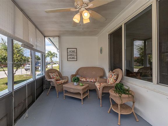 Spacious updated 2 bedroom/2 bath PET FRIENDLY corner lot fully FENCED BACKYARD in ACTIVE 55+ community. NEW ROOF coming soon. Enjoy the screened front porch with a cup of coffee and newspaper. You won't find a better floor plan than this with natural light from every room. Living room and dining room in the front. Updated kitchen with wood cabinets and granite tile counter top. Attached to kitchen is a breakfast room and the back of house has additional living space. IMPACT WINDOWS all around. NEWER TILE FLOORS throughout and freshly painted. Large primary bedroom with en suite bathroom and walk in closet. Secondary bedroom is large enough for a king sized bed. Easily walk to the clubhouse/fitness center/pool. Living room and dining room photos are virtually staged.