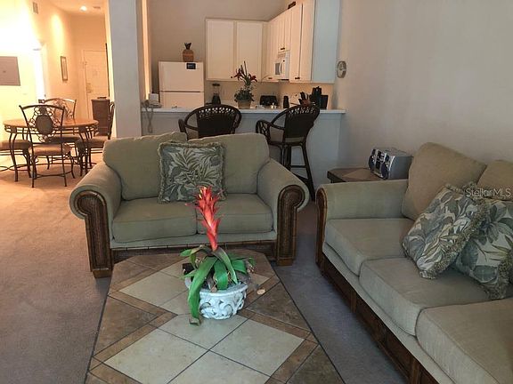 Breath taking 2nd floor 3 bedroom 2 bath fully furnished to gold standard vacation condo with water view. Bahama Bay resort features a beautiful spacious clubhouse with front desk check in and concierge,fitness center, pool,gift shop, and tennis courts. This gated community has a stellar reputation and is managed by Wyndham Vacation Rentals.Just minutes to Disney attractions, restaurants, and shopping makes for a convenient and enjoyable holiday experience. Fully furnished for short term rental down to the knives and forks! Don't miss out! Call to view before it's gone.