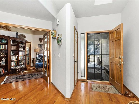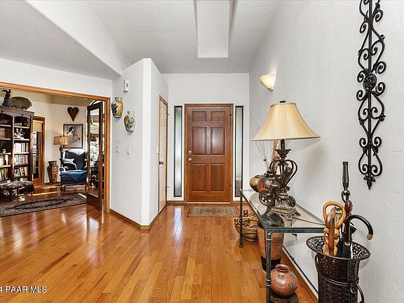 Welcome to your dream home in the picturesque Hidden Valley Ranch of Prescott, Arizona! This 4-bedroom, 3-bathroom residence offers a perfect blend of luxury, comfort, and beautiful views. Upon entering, you'll be greeted by a spacious and inviting living area adorned with large windows that bathe the space in natural light, highlighting the beautiful hardwood floors throughout. The open-concept kitchen is delightful, featuring solid countertops, stainless steel appliances, and ample cabinet space. The master suite is a sanctuary of relaxation, boasting a generously sized bedroom, a spa-like ensuite bathroom with a soaking tub, and a walk-in closet. Three additional bedrooms provide plenty of space for family or guests, each offering its unique charm. One of the bedrooms is being used as