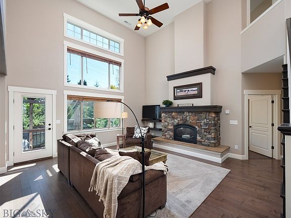 Gorgeous, 4B|3B + office, custom home with separate lower level 1B|1B apt. Beautiful wood floors with in floor radiant heat + house has AC. Ideal location on a cul-de-sac, close to Bozeman Deaconess Hospital, Peet's Hill trail system, MSU & Downtown Bozeman. Stunning, two story great room open to the kitchen and dining room with stone gas fireplace and wall of windows. Spectacular kitchen with large picture window over the sink, butler's pantry, large, 6 burner induction cooktop and huge center island with seating for four. Sliding door from the dining area to the grilling deck with built-in BBQ and bar top seating and a great view of the "M" and the Bridger Mountains. Have dinner on the deck under the pergola and then step out onto the lush lawn and cozy up by the chiminea till the stars come out. If you work from home there's a huge main floor office with enough space for two large desks. Relaxing and luxury primary suite on the main level with large bathroom with dual vanity, his/hers walk-in closets, jetted tub, tiled shower. Upstairs, 3 bedrooms with great natural light, large closets and a full bath. In the lower level you'll find an adorable and very spacious 1B|1B apt with separate entry or could be combined with the house. Perfect for a Granny or Nanny flat! Or rent it out and produce income.