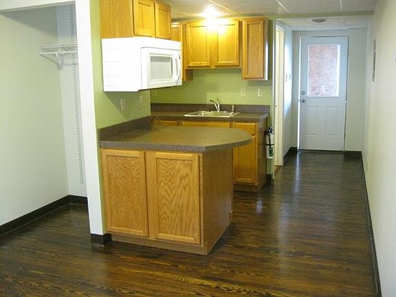 Furnished ground floor unit with hardwood floors, off street parking with galley kitchen and 3/4 bathroom. Brand new Futon with tv, chest of drawers, counter area chairs and lamps. pots,pans, silverware, plates and glasses included. Ideal for one person. Heat, A/C, water, sewer, electric, snow removal and lawn care all included in rent. Also has free tv antenna available. Unit is non smoking. Laundry room with coin operated washer and dryer steps away from entry.