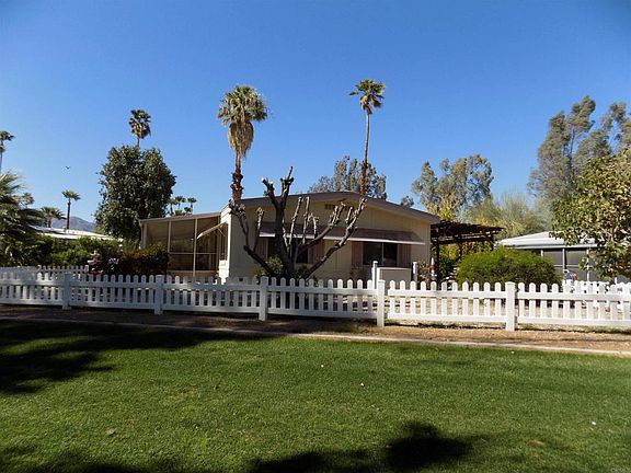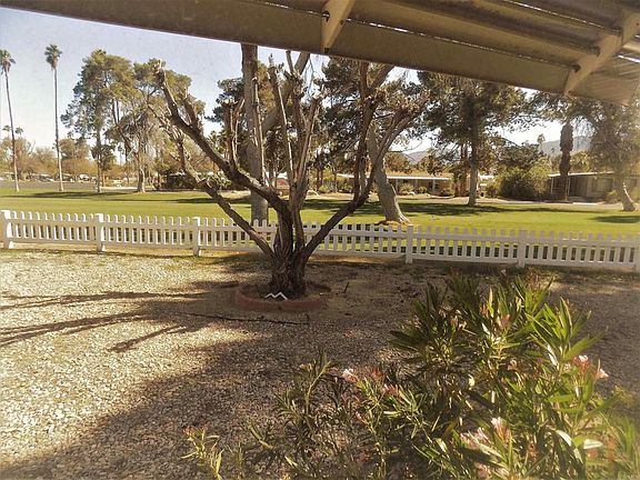 Exceptionally large backyard backing onto the beautiful golf course and mountain views. Enjoy the spectacular sunsets from the fire pit under the pergola in the back patio, or the screened porch, or in the living room. Mature citrus trees, shade trees and dessert shrubs give a very private feel to the outdoors. Inside the kitchen has been upgraded with new cabinets and appliances Baths have also been upgraded with new cabinets and sinks. New furnace, water heater and mini split. This home has lots of natural sunlight The kitchen is equipped. Generous carport and shed. The Roadrunner Club is a very active 55+ community with a calendar filled each week. Pool, Spa and workout room are open 24 hours. A one acre dog park with grass and shade trees is a fun gathering place for 'yappy hours'. Pickle Ball, Tennis, two golf courses, BocceBall, Shuffle board - card groups, reading groups - too much to mention Beautifully maintained grounds with hundreds of mature trees is a very inviting oasis in our little village of Borregp. Space rent 930. per month