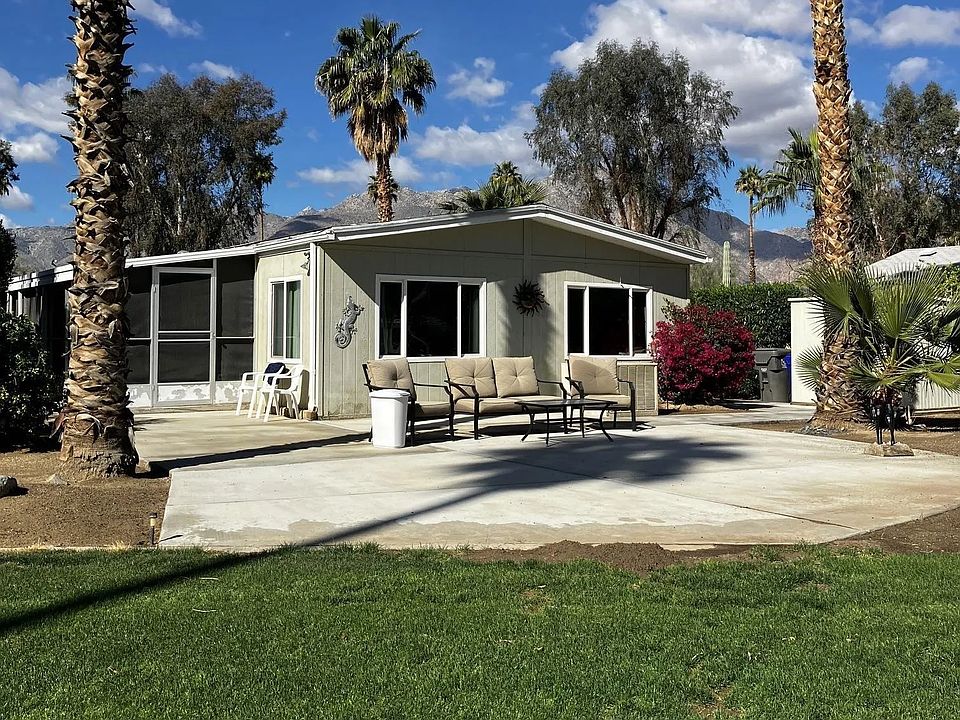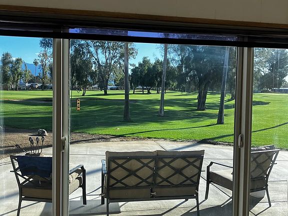 View, View View...Golf cart included...Beautiful 2bd/2ba on the golf course, Freshly poured Back patio overlooking hole 6 & 7 with spectacular Mountain backdrop...Green grass, Palm trees and a 18 hole, par 3 golf course in your own backyard. Low e dual pane windows throughout, beautiful laminate flooring & large screened in porch (California room). All furnishings included. All offers subject to Road Runner Club approval.