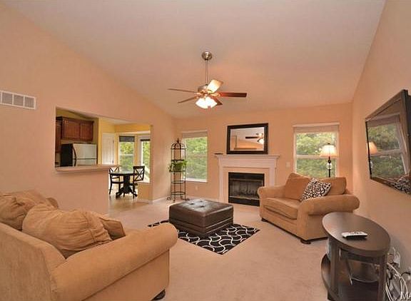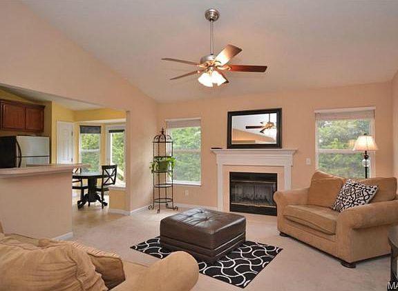 Spacious 4 Beds, 3 Full Bath Ranch Home on Private Cul-de-sac! Custom Finished Lower Level Walk-out to patio. 3-Car-Over-sized-Garage. Across from Bear Creek Golf Course! Main-Floor Laundry, Gourmet Kitchen, lots of counter-space. Custom Pull-out Drawers, Gourmet Double-Ovens, Microwave & Convection Oven, Newer Stainless appliances. Eat-in breakfast room walk-outs to private backyard & beautiful trees! Separate Dining Room, Vaulted Great-Room, Wood-burning Fireplace w/blower. Huge Master-Bedroom-Suite, Walk-in Closet, Separate 6 ft. Jacuzzi bathtub, 2nd Bedroom has Custom-Built-In Bunk-beds(can be removed). Carriage-Garage Doors, New A/C, New Roof, Gutters, Ridge Vents. Finished Lower Level has 4th Bedroom, 3rd full bath, extra 1200 sq. ft. w/Custom Lighting, Media & Game Room, plus Lots of storage! Walk-out, great for entertaining or relaxing! Close to Hospitals, Schools, Shopping, Starbucks, Parks, Community Rec-Plex/Water-Park & Golf Course! Approx 25 min to STL-Airport.