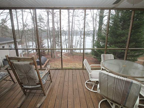 Lake Hartwell cottage with double decker boat dock with boat lift and pwc lift and gorgeous lake views! The dock measures approximately 26 x 28 with a 10 x 24 slip. (Most slips are oly 20' long). The 60' long gang walk is wheeled. Concrete path from the cottage to the shoreline with a gentle slope. Rip rap is in path to preserve the shorline and power and water are available. Deep water cove with the water measuring approximately 17' deep at the entrance to the boat slip as of listing date. What a great lake retreat! Check out the photos to see the open floor plan capitalizing on every inch of space! Hardwood floors throughout. The living room, dining area and kitchen are all open and have wonderful lake views. A large breakfast bar separates the spacious kitchen from the dining area. Double doors open from onto the huge lakeside screened porch with your own personal Tiki Hut for parties! The first bedroom hosts two twin beds and has its own private full bath. The washer and dryer pass with the sale and are in the full bath. The second and third bedrooms share a hall full bath. The cottage is sold mostly furnished (see schedule A). A new roof was installed in 2011. In 2014 a new gas pack was put in as well.
