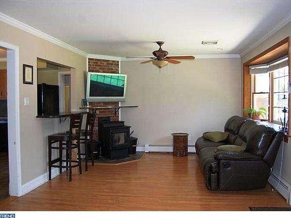 Located on a double lot this ranch has been remodeled from the studs out! New sheetrock, roof, electric, pergo floors, baths, crown molding, etc. All you need to do is move in. The yard is fenced and has a 18X13 brik patio. Closed circuit surveillance system is included, a wood pellet stove heats the entire house for 100/month. Large storage shed, pull down attic stairs in garage for storage. The interior has neutral colors and is sunlit and inviting. Award winning Neshaminy School District. Schedule your appointment today.