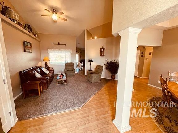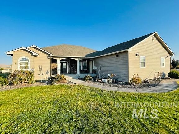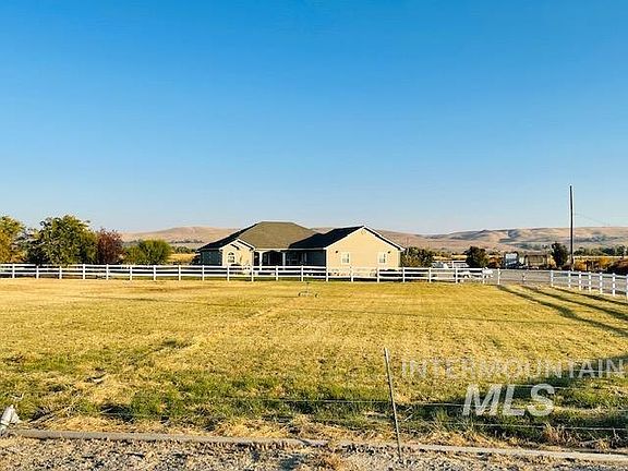 Custom built 4 bd 3.5 bath 2329 sqft home on 5.20 acres with 3.6 acres irrigated pasture! Open floor plan with vaulted ceilings and a living room and family room and kitchen with large breakfast bar with Corian countertops. Gas cooktop and double oven, fridge, dishwasher and microwave all stainless steel and included with the home. Oversized master bedroom and big master bathroom with walk in shower and dual vanities with a large soaker tub and walk in closets. Huge laundry/utility room with a 1/2 bath off of the garage. Home has a office and has oversized internet wiring through out the entire home. 2 year old propane furnace, new water heater, new ceiling fans in every room. Covered cement patio for barbecuing and watching the sunsets! Small orchard with apple, plums, peach, apricot and pear trees. 2 car attached garage and plenty of R.V parking and plenty of room to build a shop. This place has a nice 360 degree view of the surrounding valley and the Malheur Butte!