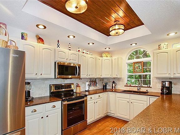 Beautiful home with fresh updates in 2018! 4 bedrooms, 3.5 baths. New flooring including wood-look tile, updated lighting, more modern stainless steel appliances, gorgeous kitchen with white designer cabinets and nice back-splash. The spacious breakfast bar and dining room open to the living room w/ vaulted ceiling and stone fireplace! Dining room leads out to screened in patio that feels like a relaxing oasis you won't want to leave! The laundry room off the kitchen serves as a mud room leading in from the 2-car garage. Home has main level living with a spacious master off the living room w/ ensuite bathroom and private balcony. Lower level has a family room with bar area another guest bathroom, and 3 additional bedrooms one with a private bath. Ample lower deck has very minimal stairs with a gentle sidewalk to the concrete dock with 12x36 slip, swim platform, and double PWC space. What more could you ask for in a home? No HOA fees, and county maintained paved roads to the door!