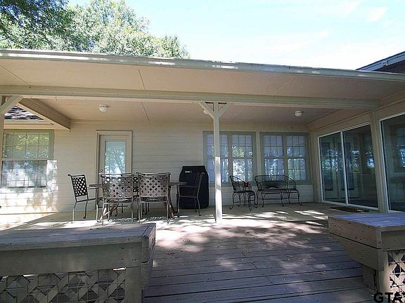 “All Tucked Away” is how I you could describe this property. Beautiful waterfront home on Lake Fork that sits way off the road nestled amongst all of the hard woods. This home is located in the Northshores Subvision putting you on the west side of the lake closer to Dallas. It is 1.95 acres deeded. You have a very nice boathouse & a 20’ x 30’ workshop to keep all of your lake stuff. This home has an open floor plan, cathedral ceilings, exposed beams, recessed lighting, WBFP with built-ins on either side, formal dining area & breakfast area. Kitchen has lots of countertop space & a kitchen island. It has track lighting & down lighting, 2 stainless steel ovens & a dishwasher. Master bedroom is very large with room for a sitting area & separate walk-in closets. Master bathroom his & hers separate lavatories, a Jacuzzi bath tub & walk-in shower. Guest bedrooms are comfortable in size & the guest bathroom is oversized. This is a home that should appeal to everyone.