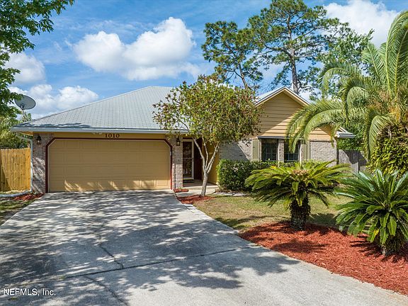Welcome home to this lovely 4/2 on a cul-de-sac in the desirable community of Grogans Bluff. The exterior offers a large fenced yard with beautiful trees, fire pit with pavers, and an oversized screened lanai. It's fully fenced for privacy, and double gates would allow RV or boat parking. Open concept for easy living, and a split floor plan arrangement for bedrooms. Three of the bedrooms have walk in closets. Enjoy the cozy fireplace in the great room, separate dining room, and also an eating space area in the kitchen. All appliances convey, well with pump for watering the yard. Very convenient location to shopping , restaurants, and the beaches.
