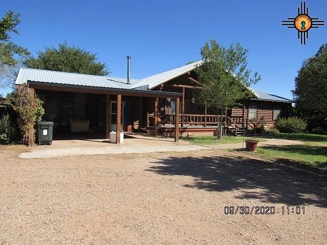 Looking for the unusual? How about this fantastic log cabin surrounded by trees on 8.4 acres. 8 acres has water rights. Wood beams throughout the interior. 3 bedroom 2 bath, large living area with wood burning stove, kitchen has rustic granite counter tops. Back yard is a dream, shade trees, wooden deck and a screened in back porch. Front has circular drive, 1 car 576 sf attached garage, 1 attached carport, 1 detached carport, livestock pens & covered 24X30 shed on concrete slab.