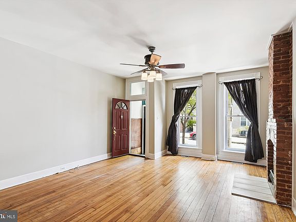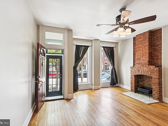 Downtown living at its finest! This charming brick townhouse in the waterfront neighborhood of Canton is just a short walk to the Square, great restaurants, shops, and the Canton Waterfront Park where you can enjoy outdoor summer concerts and food festivals. When you walk through the enclosed entrance, you will enjoy the spacious feel of the main level with hardwood floors throughout, high 9 foot ceilings and 14 foot interior width. The sun-filled living room has front facing windows with fluted casings and a brick fireplace used as a decorative piece for a cozy and rustic feel. The dining room has large windows, an exposed brick wall and an archway leading to the back of the home. Here you will find a half bath with tiled floors and pedestal sink, a storage closet, and modernized kitchen with granite countertops, stainless-steel appliances including a gas stove, tile backsplash, large pantry, and cafe shutters. Kitchen access to the deck, patio, and fenced back yard provide outdoor living space that is great for entertaining or quiet time. The upstairs level has vinyl plank flooring in the hallway which leads to a large primary bedroom with an exposed brick wall, high ceilings, closet and a hallway leading to a dressing area and renovated en-suite that has a double sink, frameless glass shower, tiled floors, recessed lighting, and more. The hall bath has a title floor and tile surround tub/shower. You also have the bonus of a second story deck off the second bedroom and an upstairs laundry area. Additional basement space is perfect for storage. HOME WARRANTY INCLUDED!