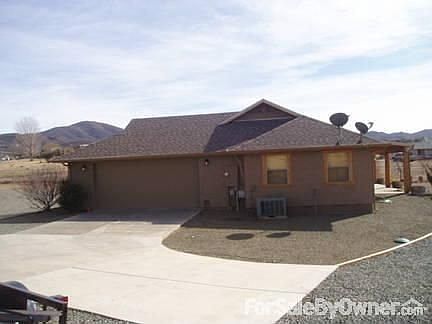 For Sale by Owner/Occupant (Owner not a Realtor or Investor)Behind Youngs Farm (Hwy 69 3BR-2BA-2CG 1586SF 2003 Site Built Home in Dewey, AZ.Lodge Pole Style Home on 1.93 Useable Acres. Property Fully Fenced with Automatic Gate Openers.Covered Front and Back Lodge Pole Porches. French Doors Open to Back Porch.Stainless Steel Appliances. Large Kitchen Pantry. Knotty Alder Cabinets Throughout.Separate Laundry Room. Stained Concrete Floors Throughout (No Carpet-Tile-Cracks).Split Floor Plan. Master Bedroom-2" Wood Blinds and Walk-In Closet. Master Bath-Garden Tub, Full Size Shower and Dual Sinks.Spare Bedrooms-2" Wood Blinds and Standard Size Closets. New Ceiling Fans in All Rooms. New Exterior Light Fixtures.Wood Burning Stove in Living Room. Dual Pane Windows/Doors-All Windows with Screens/Blinds. Security System.2 Car Attached Garage with Opener and Built-In Cabinets. Roof Original in 2003 and in Great Shape. Architectural Shingles. Standard Utilities: (Original in 2003 and in Great Shape)500 Gallon Propane Tank - Owned and Buried Underground .50 Gallon Hot Water Tank (Propane)Central Cooling/Heating (Split Package - Air Handler in Attic) Heating Propane (Heater Pack in Attic - Air Handler in Attic)Septic Tank - Pumped/Inspected Prior to Sale (Sellers Expense)Well Water - Private Well - 20 GPM - Inspected 9-2008 and 4-2011.Underground Utilities - Electrical (200A) - Phone - Cable - Propane. Appliances Included: (Original in 2003 and in Great Shape)Refrigerator-Microwave-Dishwasher (Black/Stainless Steel)Stove/Oven Combo (Propane) (Black/Stainless Steel)Washer/Dryer Stack (Dryer Propane) 3CG 1200SF 2006 Site Built Detached Garage (Matches House in Finish and Color)30WX40D (1200SF). 16WX8H Garage Door. Door Opener. 3W Man DoorAmple Built-In Storage. 110/220. No Heating. No Cooling.Ample Lighting In and Out. Dual Pane Windows $500.00 Towards 1-Year Home Warranty (Not to Exceed)$500.00 Towards Home Inspection (Not to Exceed)$500.00 Towards Well Inspection (Not to Exceed) I Look Forward to answering any Questions or to Schedule a Showing.Additional property info: http://www.forsalebyowner.com/listing/3-bed-Single-Family-home-for-sale-by-owner-1010-South-Foothill-Drive-86327/22523882?provider_id=28079