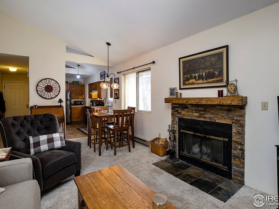 Easy living awaits at this nicely updated, main-level condo at Eagles Landing.Two bedrooms and one newly renovated full bath, open great room with wood burning fireplace, kitchen with plenty of cabinet space and your own spacious private patio. Perfect full time residence, weekend get-away, or long term rental. Adjacent to open space. Eagle's landing is right off the hike/bike trail for an easy walk to downtown, Lake Estes, shopping, dining and schools. Don't wait, let's visit today! $232,500