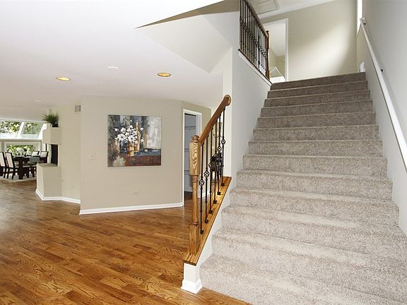 One of the most original and beautiful homes youll find in the community of Barrington Village!Recently updated with many amazing features, this home includes over 3,400 sq ft of living space for you and your family. The main level showcases an open floor plan with sleek hardwood encasing the foyer, living room, and dining room. Adjacent to the cozy family room is the kitchen which includes 42" cabinets, granite countertops, a breakfast island, walk-in pantry, and stainless steel appliancestogether, these rooms make the perfect family time space! A sliding glass door to the backyard is also in the eating area of the kitchen. A den is just around the corner from the kitchen, which could be used as a playroom, office, or anything else your family needs. Upstairs youll find 4 bedrooms with 2 renovated full baths. The master suite includes a private bath plus 2 walk-in closets. Also conveniently located upstairs is the laundry area. In the lower level youll find a fully finished walk-out basement with rec room, wet bar, a 5th bedroom, and a full bath. Other new items include new central AC, new siding, and a new roof. Located within school district 220 on an oversized tree-lined homesite, its close to Grove Avenue school and within walking distance to Metra train.