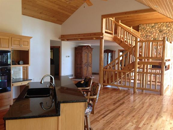 Enjoy the views of Truman Lake while you sip your coffee on the deck of this Colorado style home nestled on approx. 33.9 Acres. Corp of Engineer ground surrounds you for privacy. Over 3,000 sq. ft. of living area, with vaulted ceilings, hardwood flooring, 4 bdr, 3 full baths, mstr bdr suite, extra large utility room, stone fireplace, many more amenities thru out. Farm-co building tall side: 30x23 reg. side: 42x30 Reg. side of building is heated and cooled with 3 garage doors Tall side has double door and a single door All with concrete flooring and electricity. Covered porch area with fish cleaning station area. Outdoor Summer Kitchen 20x 17 Has cabinetry, sink, stove, microwave Raised bed gardens with Irrigation system Back-up generator with a 1000 gal propane tank Private drive that is gated. Boat ramp for Truman Lake only 2 miles from property.