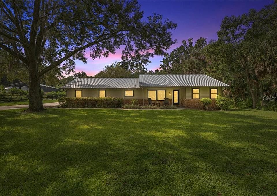 Beautiful 3BR/2BA Home on Nearly 1 Acre with Shop & Pole Barn!! Welcome to this well-maintained 3 bedroom, 2 bathroom home offering over 2,000 sq. ft. of living space on a .93-acre lot in a highly sought-after community. Inside, you’ll find a spacious kitchen with an abundance of cabinetry, granite countertops, and a formal dining room that could also serve as a home office. The oversized living room is perfect for gathering, featuring cathedral ceilings and a cozy wood-burning fireplace. The large master suite is a true retreat, complete with walk-in closets, plush carpet for comfort, and a beautifully updated bathroom with dual sinks, a vanity, and a walk-in shower with a built-in sitting bench. French doors open directly to the rear porch for private outdoor enjoyment. The two additional bedrooms each include walk-in closets and share a well-appointed full bath. Outdoor living is just as inviting with a large covered rear patio finished with pavers and a firepit—ideal for entertaining. The property also features a 24x24 prefab metal enclosed shop with two roll-down doors, plus a 24x28 open pole barn with a concrete base, perfect for boat or camper parking(installed in 2022). Metal Roof 2016 Windows 2024 Conveniently located less than 5 minutes from downtown Ocala where there are endless options for dining, shopping, medical offices and hospitals.