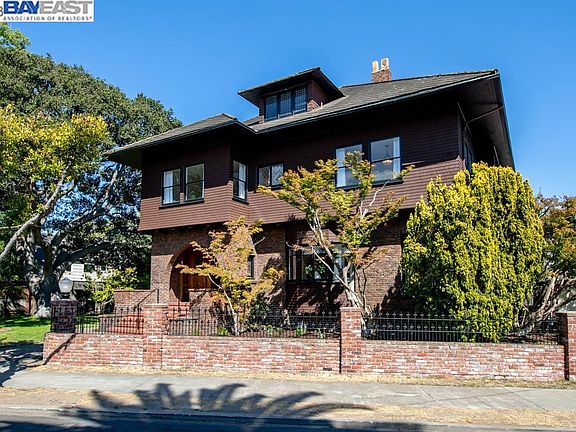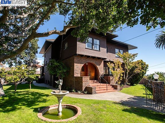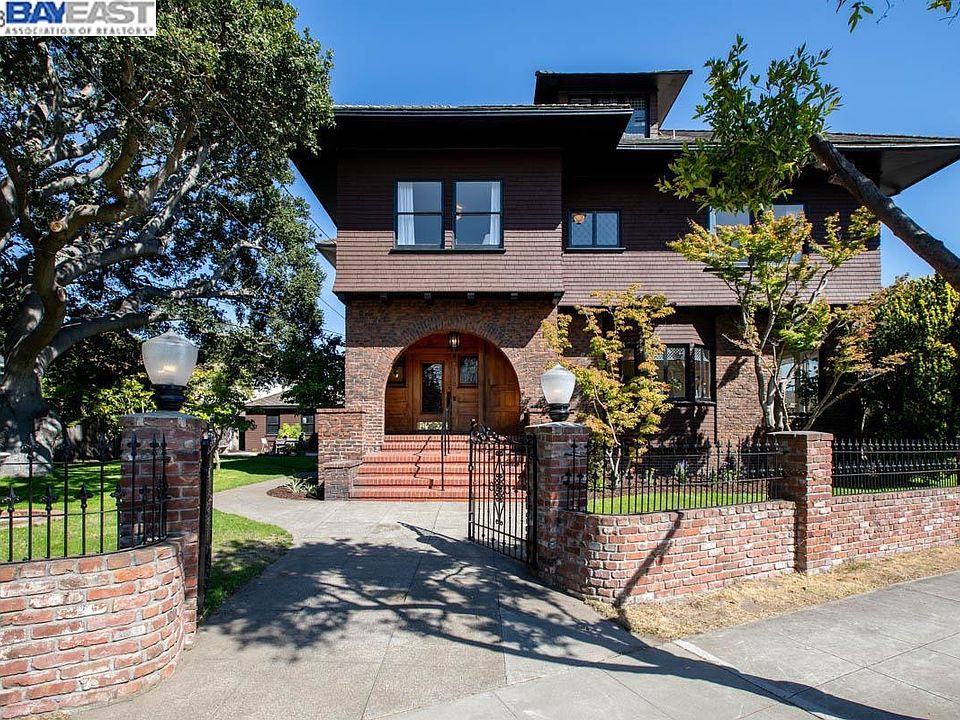 Located at the end of a quiet cul-de-sac in the heart of the Gold Coast of Alameda, 1010 Sherman is a rare opportunity to own a truly unique & historic estate! This stunning Brown Shingle Craftsman has exceptional square footage, original details and expansive estuary views, all on nearly 1/4-acre. Built in 1910, the home features 6 BR, 3.5 BA, formal living and dining room, a library/family room, a spacious kitchen + butler's pantry, an enclosed sun porch and bonus rooms. The period details of this home include a stunning center hall staircase, stained glass windows, 10-ft ceilings, detailed wainscoting + raised paneling, bay windows, box-beam ceilings, 3 fireplaces, ornate crown moulding, crystal chandeliers, oak floors and oversized windows throughout for bright natural light. The large fenced yard includes several California Oak trees, a long driveway, off-street parking and a detached garage for storage or a potential home office/workshop/studio. Bonus spaces include a large attic with Douglas fir plank flooring, cathedral roof line and windows, offering square footage expansion potential, and a semi-finished basement with an additional 978 SF. Located just blocks to Franklin Elementary School and park, with easy access to South Shore Center and Park St amenities.