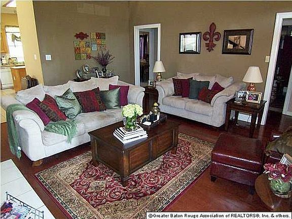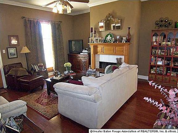 Charm & comfort await you in this well maintained, 3BR/2BA home in Springlake at Bluebonnet! Convenient to shopping, dining, LSU & interstates, with a short drive to downtown Baton Rouge! You'll enjoy the casual setting in the living room with wood floors, high ceilings with crown molding and center fireplace with pretty mantle. Neutral colors and beautiful decor continue throughout entire home. Sunny dining area is open to kitchen with ceramic tile floors, counters & backsplash, island, plenty of cabinets and large pantry/laundry room. The split floor plan features a separate master suite with recessed ceiling, crown molding, ceiling fan and plush carpet. Loaded master bath features ceramic tile floors, separate his & hers vanities as well as walk-in closets, garden tub with glass block window above and separate shower. Additional bedrooms are nice sized with plush carpet and great closet space. Outside, you can relax on the front porch overlooking the landscaped front yard or enjoy the additional patio area in back great for outdoor entertaining! Two-car carport with attached storage room in back. Call today to schedule your private tour!