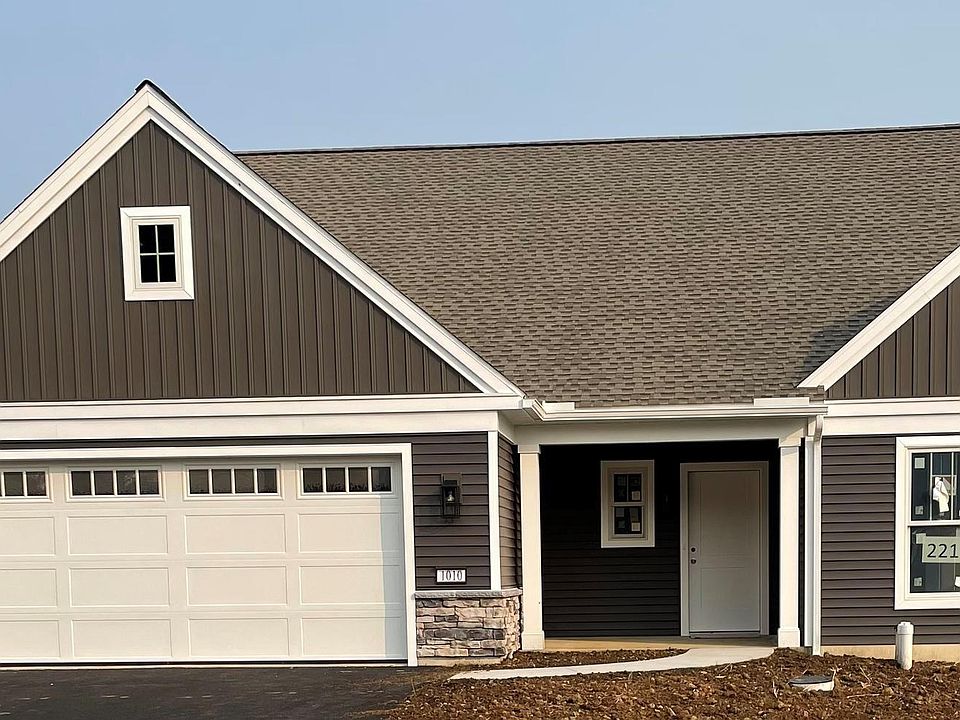 The ALDEN in Alden Place. Our namesake cottage checks all the boxes for first floor living with three bedrooms, comfortable entertaining space, and an impressive cathedral ceiling. The front porch and covered patio expand your living area to the beautiful outdoors, making the ALDEN a favored choice. Alden Place is a 55+ Active Adult Community featuring a 17,000 sq. ft. Clubhouse with an indoor pool, hot tub, fitness center, ballroom, hair salon, library, billiard room and coffee cafe. Also, the community has a small fishing lake and access to Rails & Trails for walking and biking.