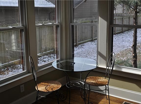 Cute Bungalow with lots of natural light, renovated over the past few years, granite and stainless kitchen with tile backsplash, hart pine floors, 2 car garage to die for, 2 fireplaces, rocking chair front porch, deck with large private back yard.