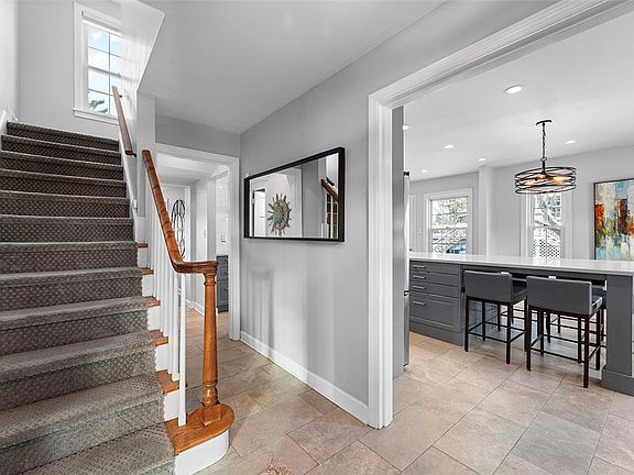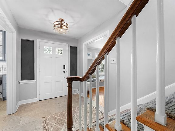 3 story stone Colonial just a few blocks to High School/Rec Ctr complex. Quality construction w/loads of charm. Welcoming LR w/13'wdw seat/crown mldg/French door to porch/marble frpl w/classic mantel. 2018-opened kit to DR/11' Quartz isle w/seating/stainless apron sink/custom cabs w/drawers-no dead spaces/blt in desk, charging, coffee or wine station/counter to ceil subway tile backsplash. Spacious Fam Rm-powder rm/wet bar nook w/stone accent wall/gas frpl/2 sets of sliders to 19' deck. Regraded, expansive yard. HW continue to 2nd & 3rd lvls. Tranquil primary ste w/ensuite/walk in clst. 2 addl 2nd lvl bedrms share roomy hall bath w/stained glass wdw. Easily accessible 3rd lvl has large wdw at landing that floods space w/natural light-perfect teen ste/office/gaming,crafting or play rooms. Walkout LL-GR/powder rm/2-car gar access/7' ceil/strg lockers. Rear firepit patio. BBQ kit under deck. Central location close to schools, pool, ice rink, playground, basketball, paddle & tennis courts