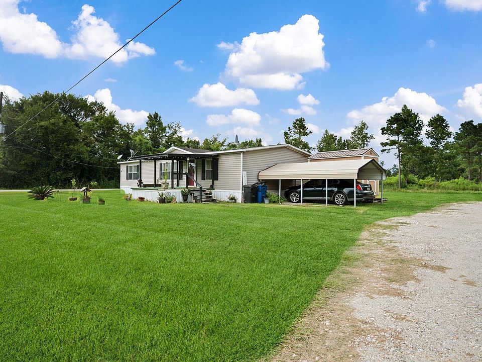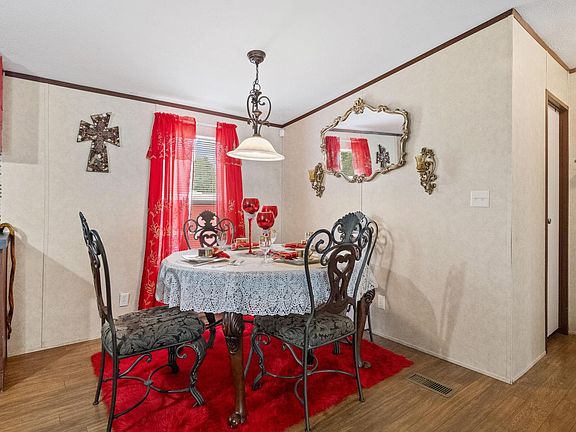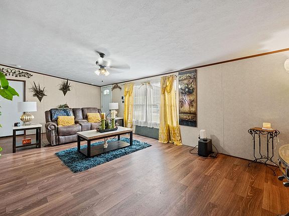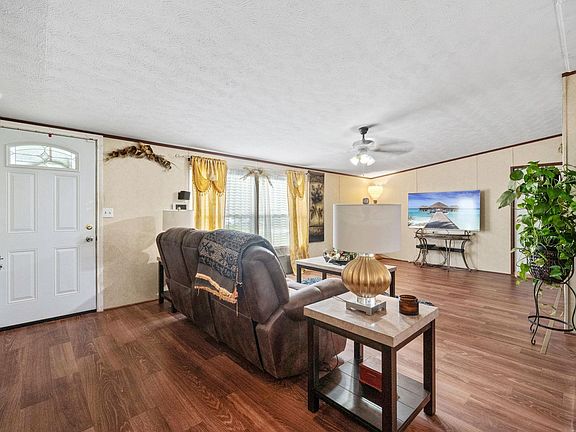Stop the car! This is the one you’ve been searching for. This home truly checks all the boxes: never flooded, affordable, low tax rate, and no restrictions. Set on a cleared corner lot, this 3-bedroom, 2-bath manufactured home was built in 2018 and set up by Clayton Homes. Inside, you'll be welcomed by a spacious living area filled with natural light from large windows. The semi-open floor plan offers great flow, with clear sight lines from the living room to the kitchen and dining areas. The kitchen is roomy and functional, offering ample counter space, plenty of cabinets, and a central island that's perfect for meal prep or gathering with family and friends. Each bedroom offers generous space and includes a large closet, giving everyone plenty of room to spread out. Outside, the property includes a storage building and offers an optional income opportunity with three tiny homes currently rented on a month-to-month basis.