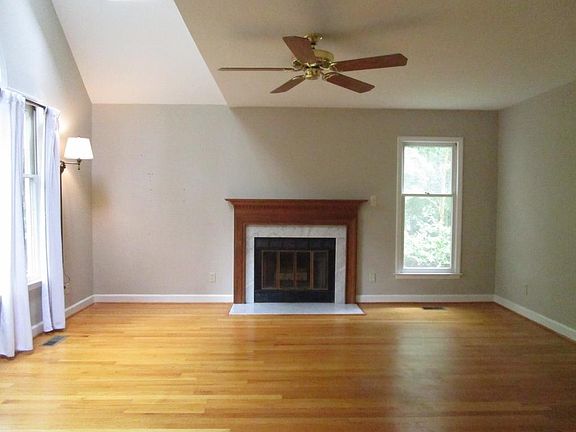 Three bedroom home in Fox Meadow, within Carrboro city limits and the Chapel Hill Carrboro City School (CHCCS) district. Hardwood floors throughout the first floor living, dining, and main bedroom room. The living room has vaulted ceilings and a wood-burning fireplace. The kitchen has Corian countertops and stainless steel appliances. Washer and dryer are provided. The primary bedroom has hardwood floors and walk-in closet. Two bedrooms and one bath occupy the second floor with ample floored attic space for storage. Additional storage is available in the backyard shed. Sitting on almost an acre, the home backs to trees with no neighbors behind the house. The deck overlooks the fenced yard. Water, trash, and lawn care are included in the rental price. Dog and cats are welcome with a deposit. 12-month Lease. Security Deposit is one month's rent. Pet deposit is $250. Included with the cost of rent: water utility, trash fee, and yard maintenance. Driveway parking. No smoking or vaping.