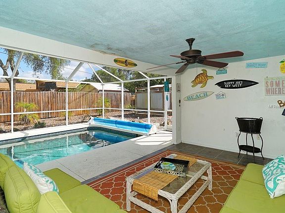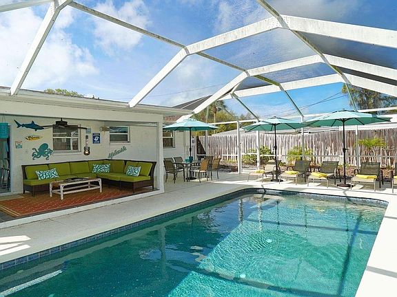 Water lovers dream house. It has it's own salt water pool and is less than 3 minutes to the South Venice Ferry that takes you to the beach on the Gulf of Mexico. Also it is less than 10 minutes to beautiful downtown Venice with it's interesting shops and restaurants. The pool has a Pebble Tech surface. The kitchen has Corian counters and euro hinged cabinetry. The driveway is extra wide and extends along the side of the house for a boat or RV parking. There is a shed and an outdoor shower next to the pool so you can wash the sand off before going into the home. Furnishings in the home are negotiable. For investors, this house has been rented for $3,900/month during high season.