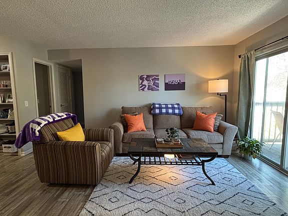 Available January 2026 - July 2026. Fully furnished and updated 2 bdrm 1 bath apartment 3 minute walk from campus and 5 minute walk to Aggieville! Apartment has all new stainless steel appliances, granite countertops, fireplace, and new flooring all installed in 2020. Very large parking lot with parking included in monthly rent. Washer & dryer in unit and walkout balcony which is great for morning coffee or studying in the sunshine! Plenty of available parking for tenants and guests. Building Maintenance, unlimited water usage, and recycling/trash service is included in rent.