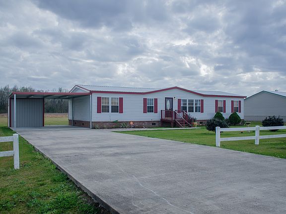 Are you looking for a home in a rural country setting under 100K, that is NOT in a flood zone! Look no further! This wonderful double wide mobile home boasts 4 bedrooms, 2 bathrooms, and is sitting on .7 acres. Metal roof was replaced in 2005 and has a lifetime warranty! The ceiling in the living room has been updated with varnished beadboard, just beautiful! Master bathroom is large with a deep garden bathtub and separate shower. The home has been very well maintained and a custom built 2 car-carport was recently added! Schedule your showing today!
