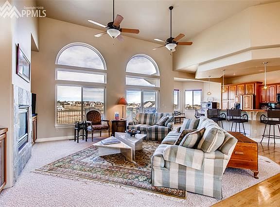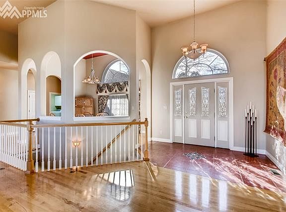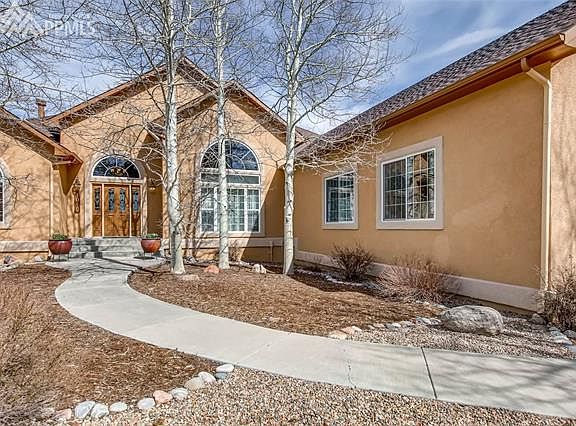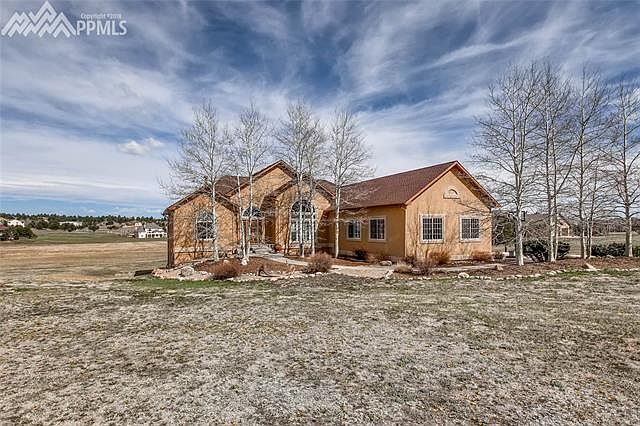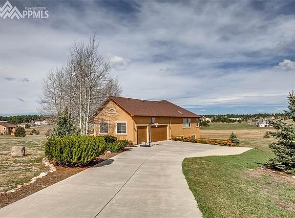 Beautiful custom rancher situated on 2.5 acres in the community of Kings Deer and backs to open space. This bright and open main level features; a welcoming foyer that leads to a formal dining room with wall of windows, arched doorways and hickory hardwood floors that flow through most of the main level. Great room has a gas fireplace and a walk-out to a the composite deck w/ wrought iron rails; ideal for entertaining. The great room opens to a gourmet kitchen with granite counters, double ovens a counter bar with pendant lighting and a breakfast nook. The private master retreat has a coffered ceiling, large walk-in closet that opens to the laundry room, and adjoining five piece master bath with jetted tub and an oversized walk-in shower. Two additional bedrooms and a full bath complete the main. The lower level features; a spacious family room and game room with a gas fireplace and walk-out to the covered patio, wet bar w/ wine storage and mini fridge. Two additional spacious bedrooms, a full bath and large storage area complete lower level. Extra features; two heaters, two water heaters, a water ph neutralizer. and so much more! Easy commute to both the Springs and Denver-You won't want to miss this one!