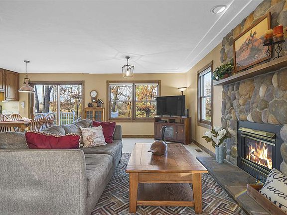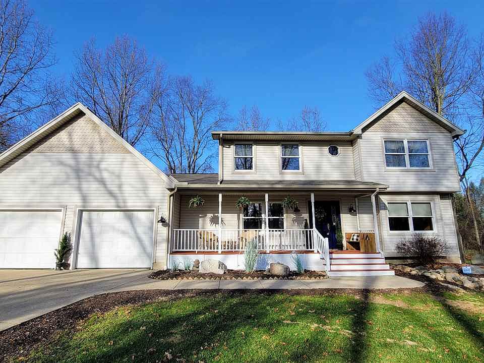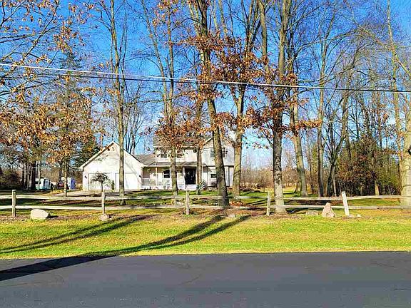 This beautifully cared for 4 bedroom, 2.5 bath home sits on over 3 acres and is located just north of Stonegate Farms on a private street. The 1st level has an open concept and includes a large living room with fireplace, kitchen with eat-in space, formal dining room, a half bath, and the laundry room just off of the attached garage. The 2nd level has 3 bedrooms and 2 bathrooms, including walk-in closets in both the master and another bedroom. The 4th bedroom can be found in the walk-out basement as well as a gym and tons of room for storage or the possibility to be finished. Tons of recent updates like RO water at the kitchen sink, a newer well pump, and a completely new closed system geothermal water furnace system installed in 2014 that will drastically help with heating/cooling costs and also includes a lifetime warranty from leaks. Outdoor features include a detached pole barn and custom chainsaw carved trees. This won't last long, so call today to schedule your private tour!